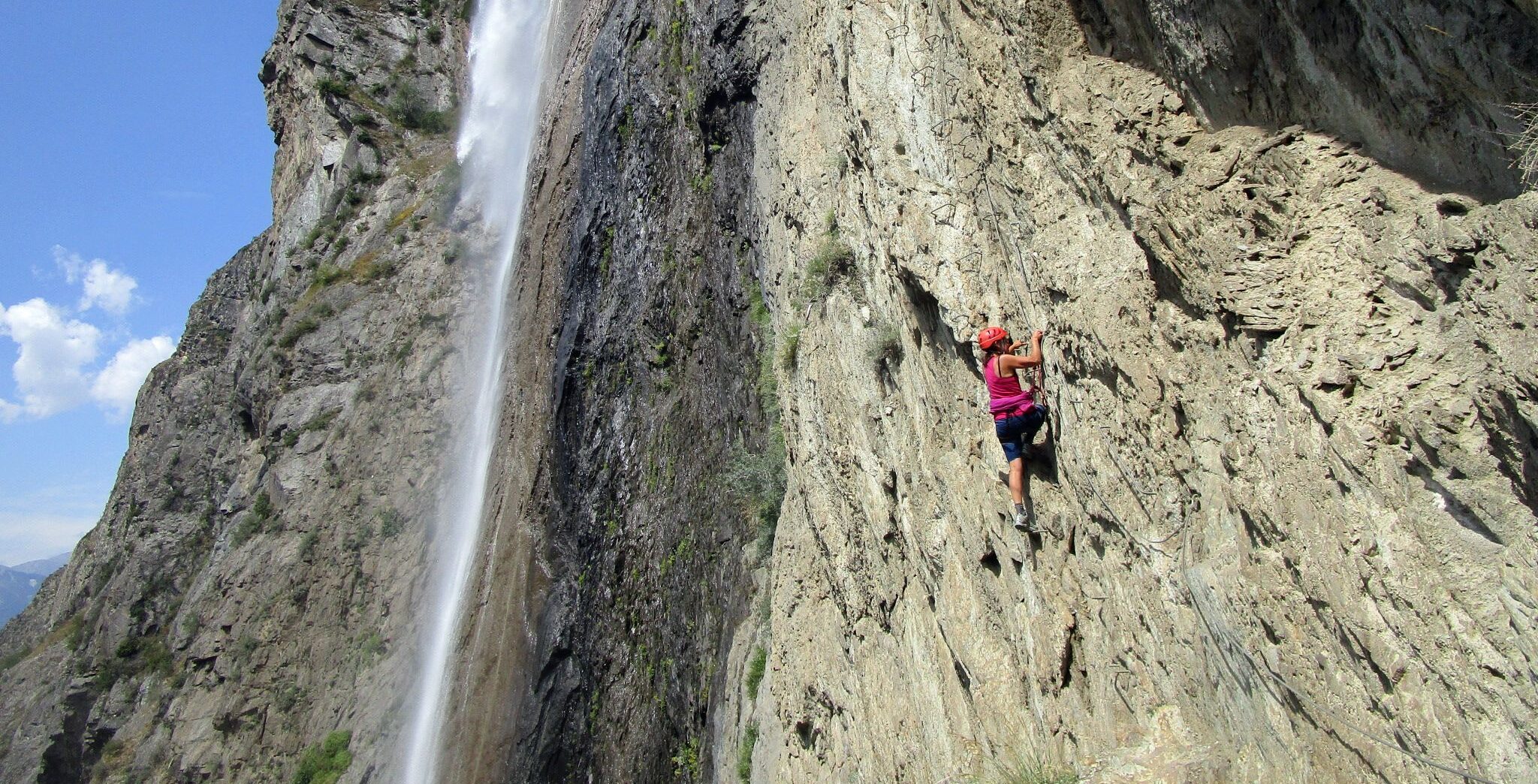 La via ferrata est l’aménagement, à l’aide d’éléments métalliques spécifiques (câbles, barreaux, échelles, rampes…) d’un itinéraire dans une paroi rocheuse. Plusieurs itinéraires sont envisageables dans les écrins et l’Oisans, de l’initiation à des grands et longs itinéraires des Hautes Alpes et de l’Isère au pays de la Meije. Le pratiquant s’y auto-assure à l’aide d’un matériel dédié (double-longe avec absorbeur de choc) le long d’une ligne de vie en place, ou encordé selon les principes de l’assurage en escalade. Concept à vocation touristique né en Autriche dès le milieu du XIXème siècle, la via ferrata s’est surtout développée à la même période dans les Dolomites italiennes. Mais le but était autre : il s’agissait de faciliter la progression des troupes militaires alpines et l’acheminement du matériel lourd parmi les falaises et ravins.