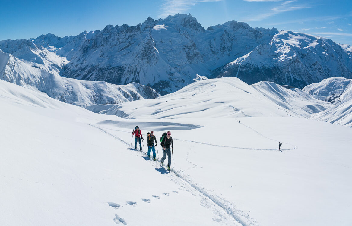 Amateurs contemplatifs ou sportifs de vastes paysages enneigés, nous vous proposons ici un séjour de 3 jours parmi les montagnes douces du versant sud de la Haute-Romanche dans les Hautes Alpes, face au majestueux versant nord de la Meije et du Râteau. Le premier jour, à partir du village du Chazelet à quelques minutes en voiture de La Grave, nous montons au refuge récemment rénové du Pic du Mas de la Grave, à 1944 mètres. Chaleureux, confortable et situé au cœur du site Natura 2000 Goléon – Emparis, ce refuge nous sert de camp de base lors du séjour et nous rayonnons à loisir autour chaque jour. Toutes les options sont possibles : de la marche courte à dénivelé modéré à celle plus longue conduisant vers quelques sommets belvédères ou au plateau d’Emparis, nous adapterons le programme selon vos envies et votre forme. Le terrain est particulièrement propice à la raquette à neige, les pentes très ouvertes et les vues panoramiques. D’autres séjours en étoile à partir de refuges ou en itinérance sont également possibles en Briançonnais (vallée de la Clarée…), et nos accompagnateurs se tiennent à votre disposition pour les élaborer.